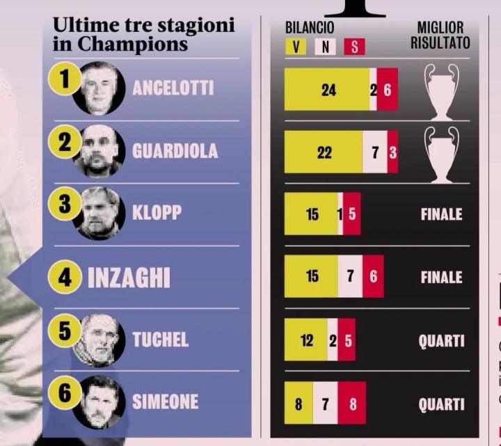 当然,对于一手缔造这支强大国米的小因扎吉也是如此,在各项国内杯赛拿到手软后,他终于能在本赛季实现执教生涯联赛冠军0的突破,这对于他来说是个里程碑式的赛季。但谁会嫌荣誉多呢?所以,小因扎吉依然想带领球队再次向这项欧洲足坛最高的俱乐部荣誉发起冲击!而他并不只是一腔热血,而是靠的硬实力!首先,他的执教能力在线,在过去三个赛季的欧冠比赛中,小因扎吉率队28场拿到15胜7平6负的战绩,胜场次数位居同期所有主教练中第四位,仅次于安切洛蒂、瓜迪奥拉和克洛普。
