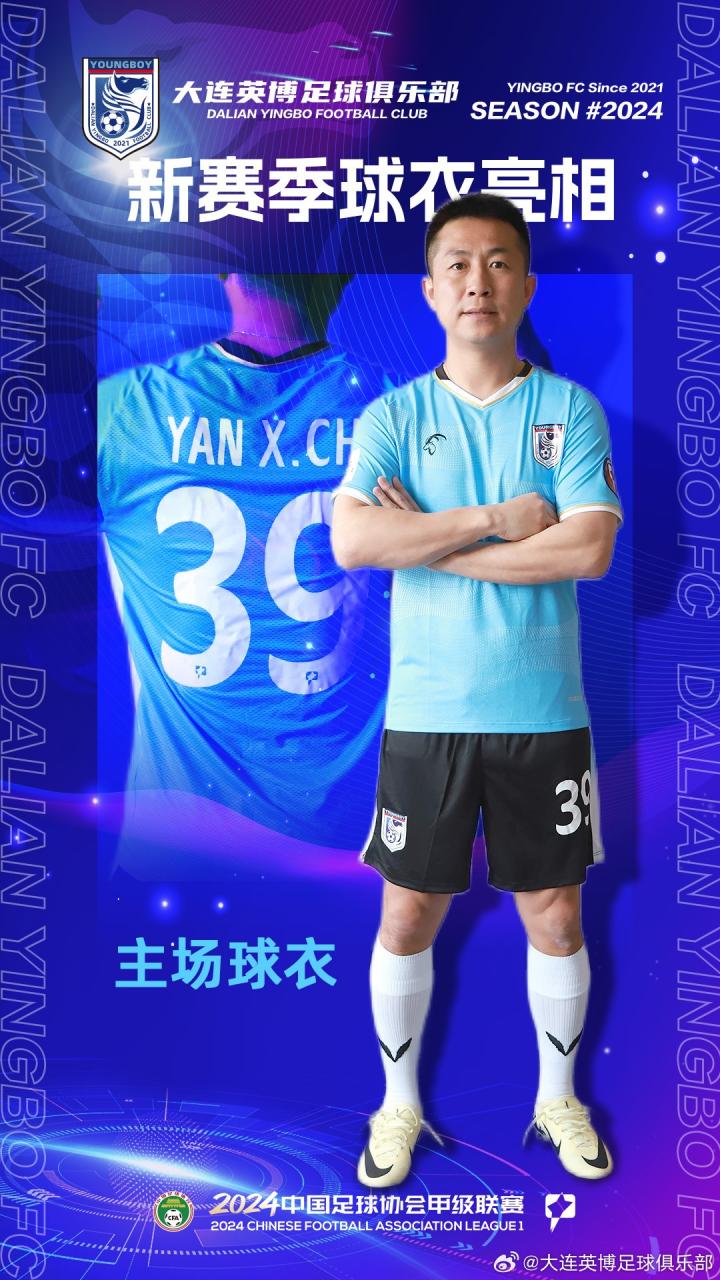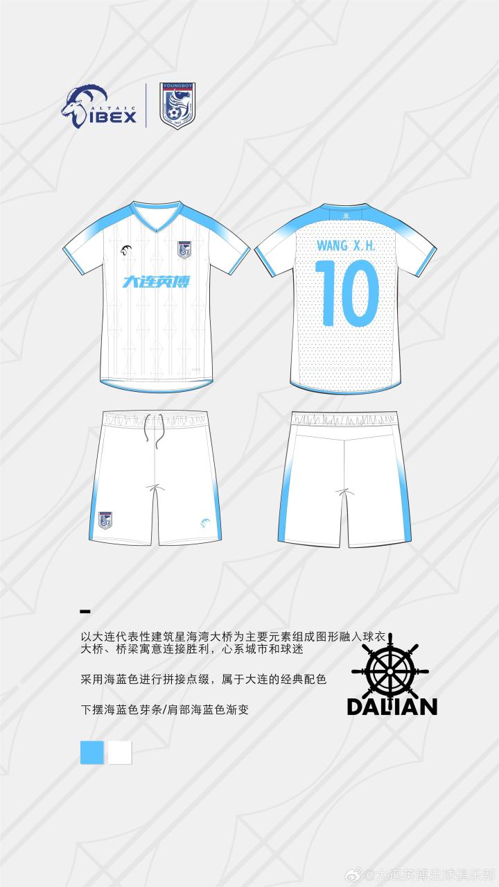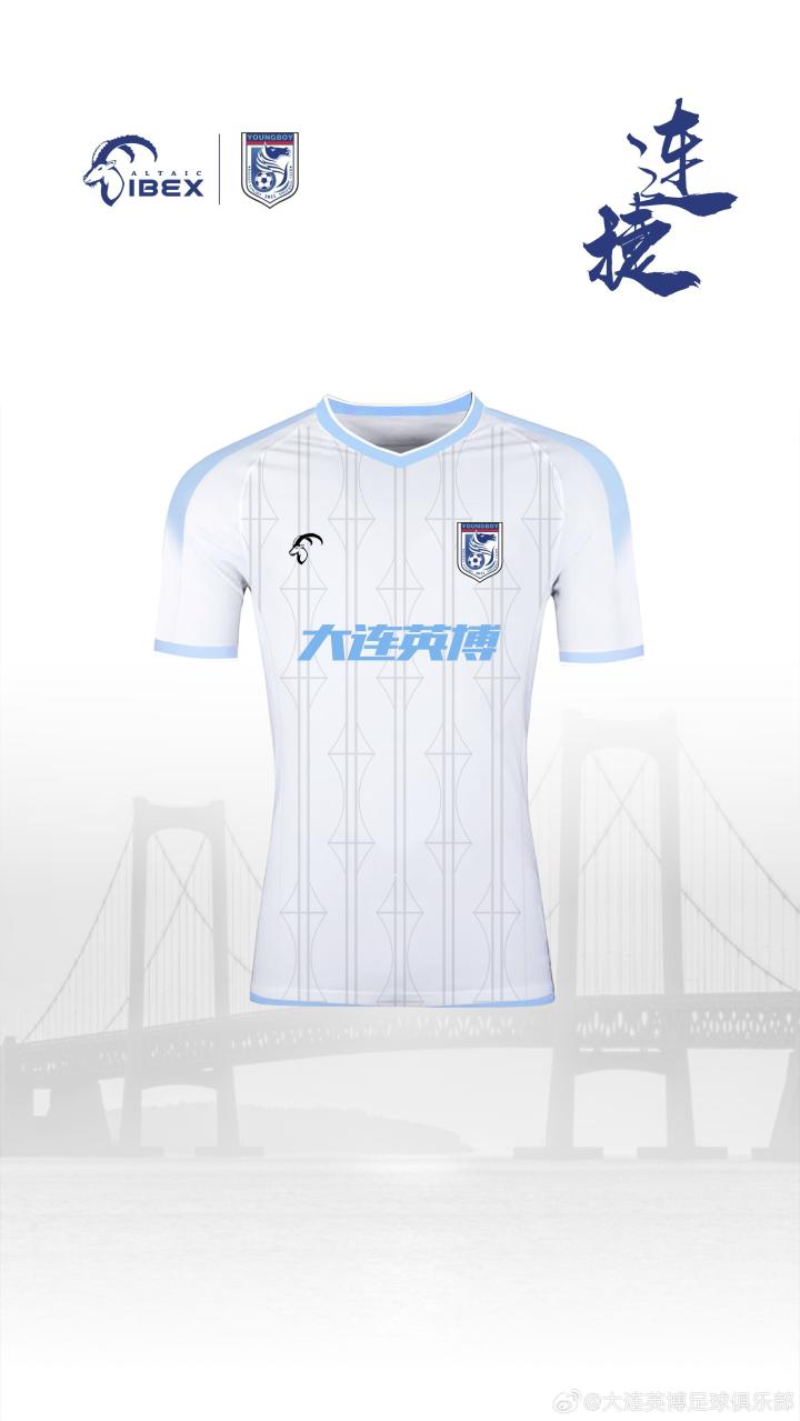 大连英博官方公布了新赛季球衣,其中主场主色调为蓝色,客场为白色。