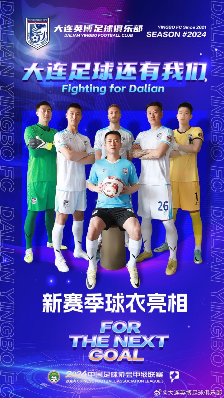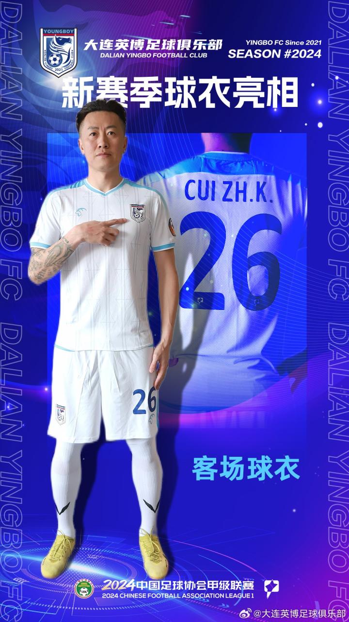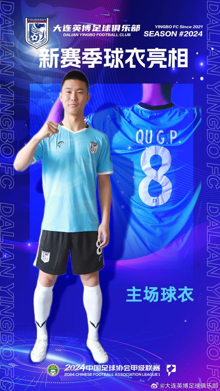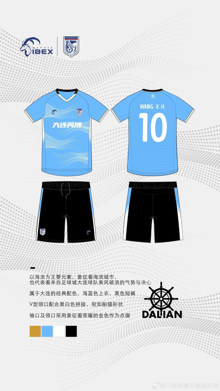 大连英博官方公布了新赛季球衣,其中主场主色调为蓝色,客场为白色。