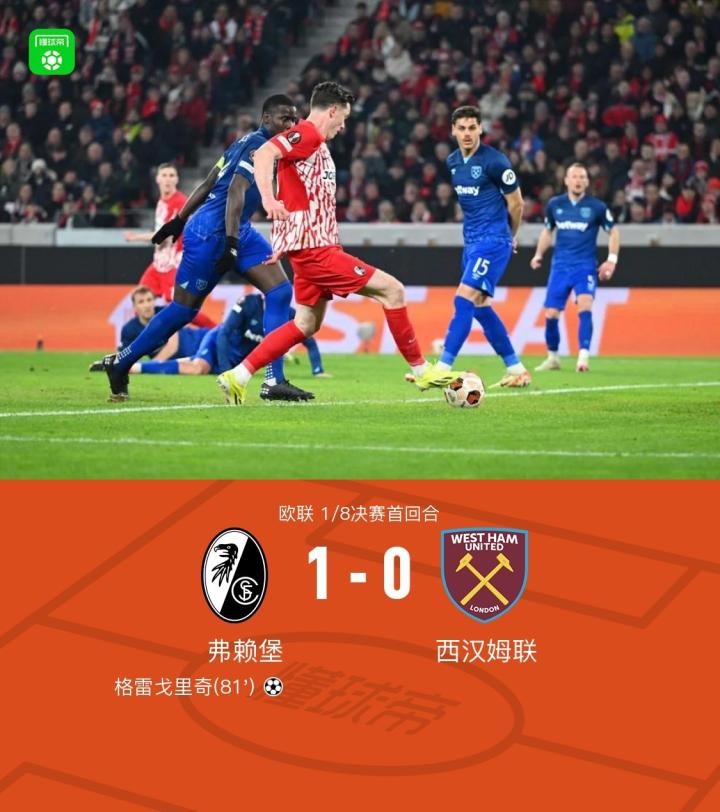 弗赖堡1-0西汉姆联,格雷戈里奇绝杀,魏斯豪普特手球惹争议