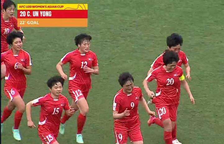 在本场比赛第22分钟,日本队后卫出现失误,朝鲜女足队长轻松破门,帮助朝鲜队1-0领先日本。