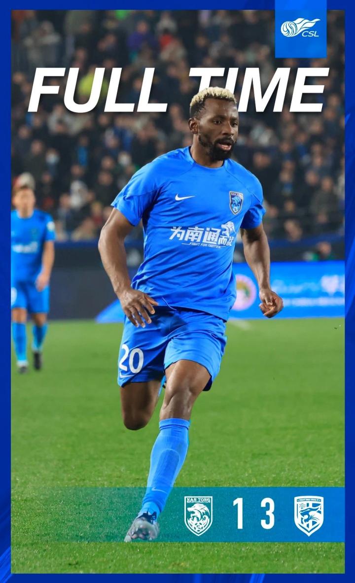 易边再战,第49分钟、第60分钟,对手利用头球和远射破门。比赛第83分钟,卡隆助攻安东尼头球扳回一球。最终全场比赛结束,南通支云1-3不敌武汉三镇。