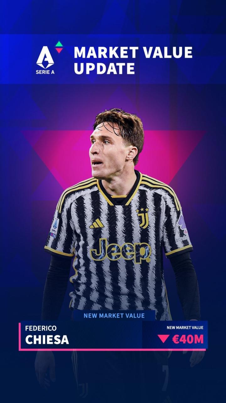 尤文前锋费德里科-基耶萨身价下降了1000万欧,最新身价为4000万欧,他成为本次更新中身价下跌最多的球员。自2021年遭遇前十字韧带受伤后,费德里科-基耶萨的身价从7000万欧一路下跌至4000万欧,去年夏天,这位意大利前锋曾短暂升至5000万欧,如今又跌至4000万欧。