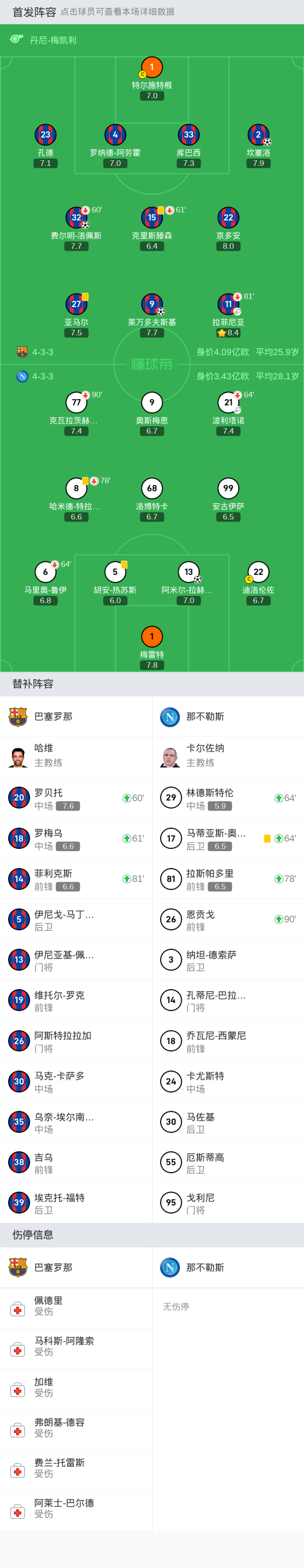 杰士邦|欧冠战报:巴萨总分4-2那不勒斯晋级8强,莱万建功