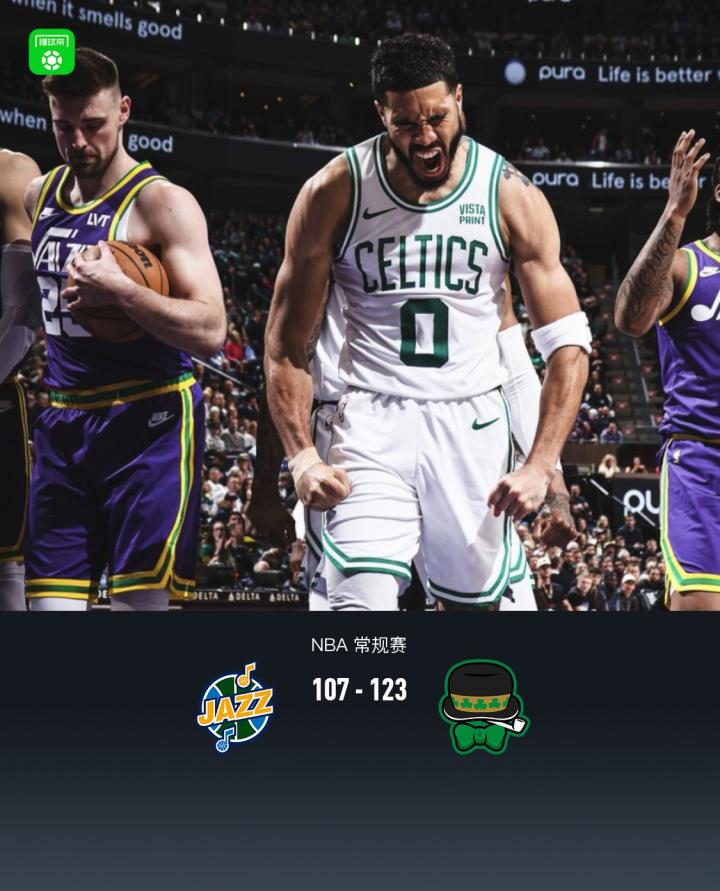 3连胜!NBA战报:凯尔特人123-107爵士,塔图姆38+6+2