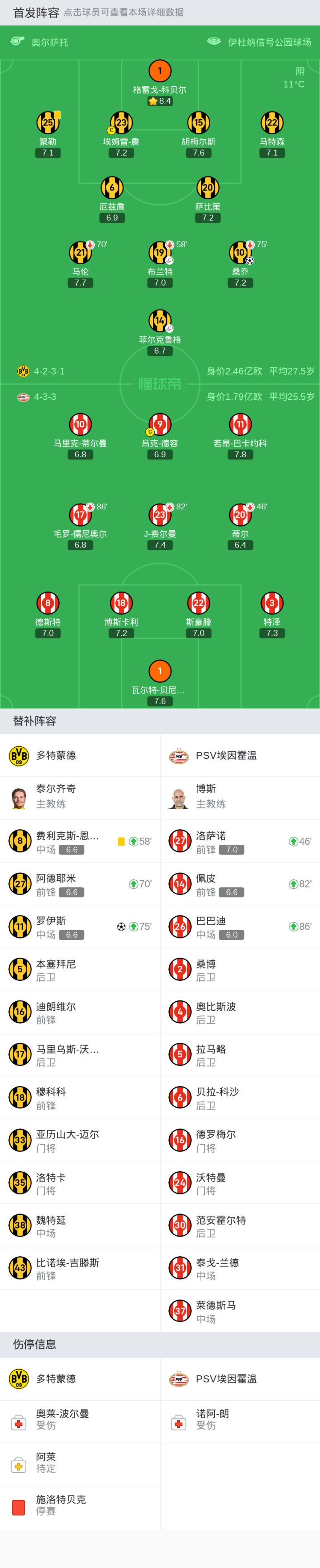 上场替补:75'11-罗伊斯, 70'27-阿德耶米, 58'8-费利克斯-恩梅加