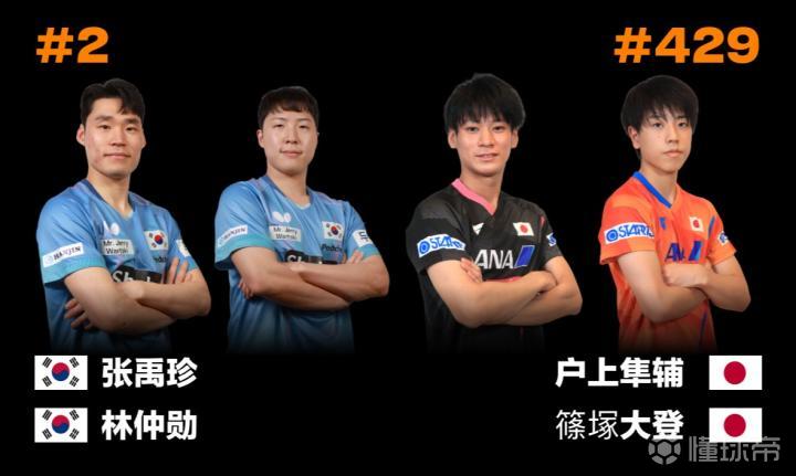 在半决赛中,韩国组合张禹珍/林仲勋将迎战中国组合马龙/林高远。