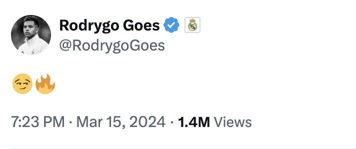 在欧冠八强遇到曼城后,皇马前锋罗德里戈更新了一条社交媒体预热。