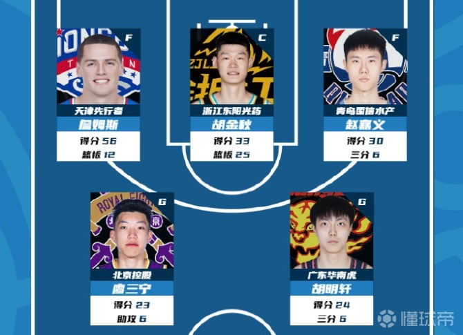 CBA第43轮最佳阵容:胡金秋领衔,胡明轩、赵嘉义等在列