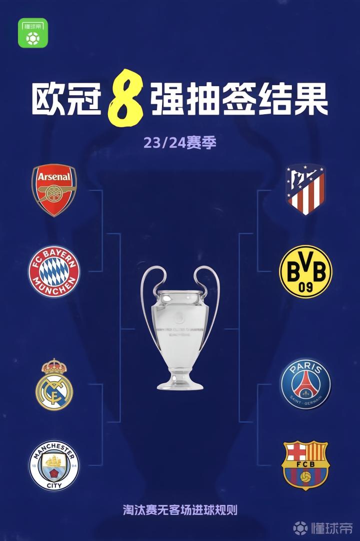 这次八强抽签,造成了强弱分明的两个半区,皇马、曼城、拜仁和阿森纳扎堆儿死亡半区,每队都会把八强战、四强战当做决赛来对待;马竞、多特、巴萨与大巴黎则集中在相对轻松的半区,各队也都认为自己拿到了好签位,甚至四支球队都有展望决赛的心态。