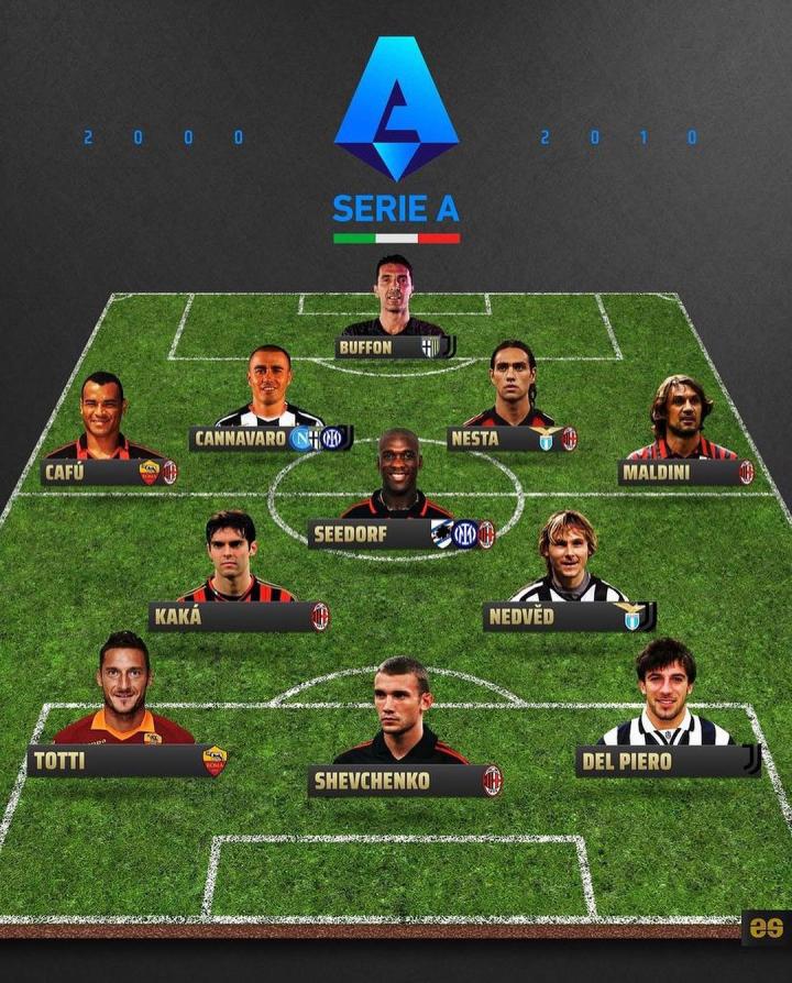 这是媒体排出的2000-2010意甲最佳阵容: 你还记得他们么?