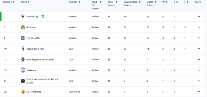 目前未获得世俱杯资格的俱乐部,排名最高的球队是美国的费城联合(41分,已无缘本赛季美冠杯剩余赛事)。由于新英格兰革命(19分),迈阿密国际(10分)和埃雷迪亚诺(10分)在未夺冠的情况下,其积分已经无法达到41分(无缘冠军尚可以拿积分最多的情况下:八强6分+晋级四强3分+四强6分+晋级决赛3分+决赛3分=21分),所以新英格兰革命,迈阿密国际和埃雷迪亚诺进入世俱杯的途径只有获得本赛季美冠杯冠军。