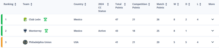 已经确定取得参赛资格:蒙特雷(2021赛季美冠杯冠军),西雅图海湾人(2022赛季美冠杯冠军),莱昂(2023赛季美冠杯冠军)