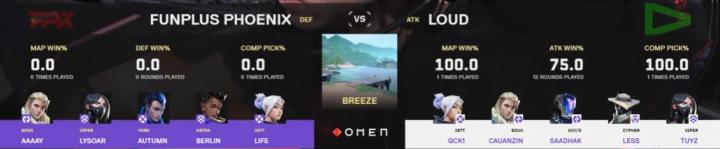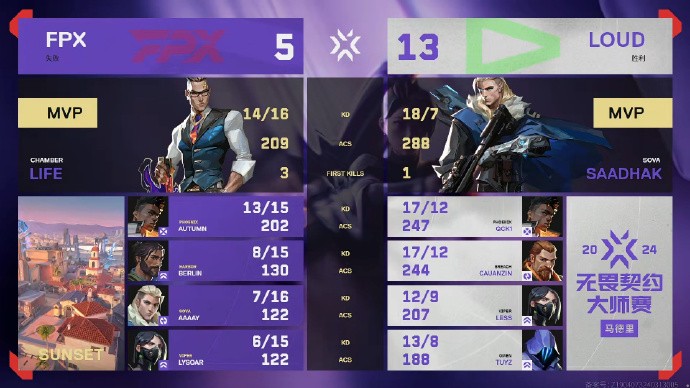 无畏契约大师赛:FPX 0-2 LOUD,成为首支被淘汰队伍