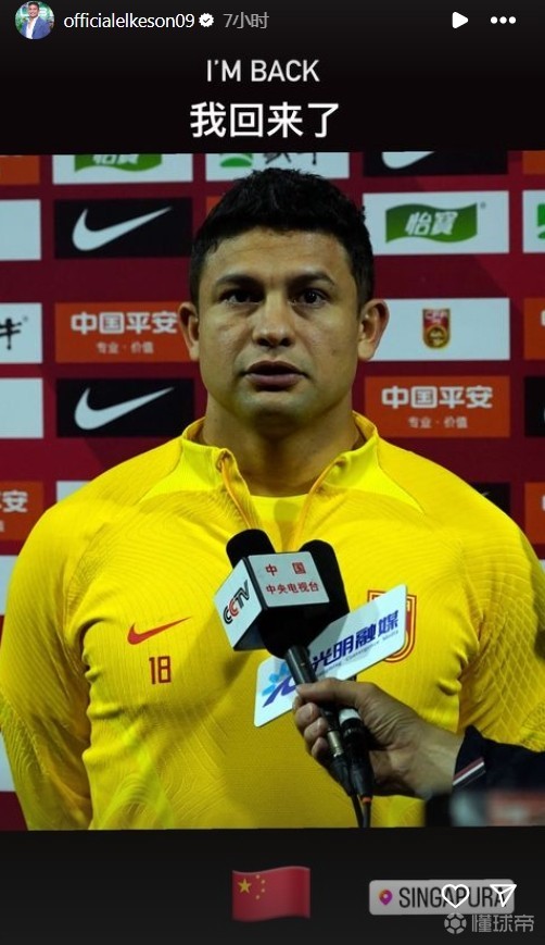 随队抵达新加坡后,艾克森晒照并写到:“I’M BACK,我回来了。”同时,图片里还配上了“中国国旗”。