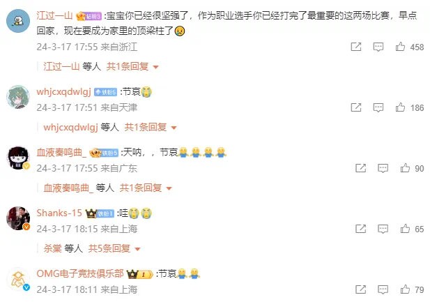 Angel粉丝,好友香克斯和OMG队伍都给Angel留言,希望Angel节哀,理解他下场比赛打不了。
