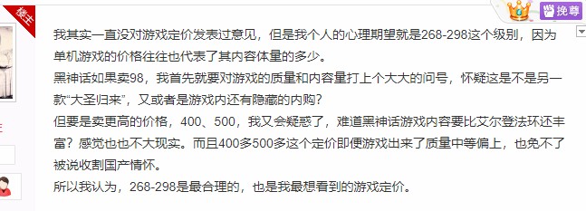 《黑神话》定价登贴吧热搜:网友心理价位298元buddj @懂球帝2024-03-19 11:34近日《黑神话》定价登贴吧热搜网友心理价位298元。《黑神话:悟空》游戏定价登上贴吧热搜,之前,黑神话吧吧主特地建立了一个定价讨论帖来让网友们讨论游戏价格。根据网友们的讨论,大部分人的心理价位都是298元,各位觉得卖多少合适呢?目前该作已在国内拿到版号,确定将于今年8月20日发售,请静待预购开启,售价公展开更多