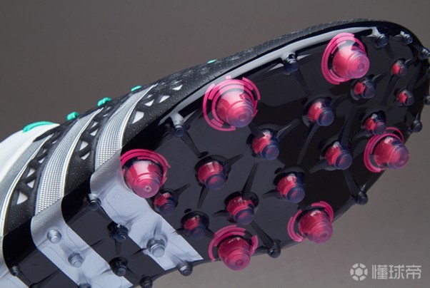 另一个顶级版本是Ace 15+ PrimeKnit足球鞋,也就是Adidas最早投入量产的织物足球鞋。Primeknit织面材料完整覆盖了球鞋前半部分,并在鞋头采用了压膜方式进行加固,实际使用过后,你或许会感受到鞋面的压迫感。这种紧致的设计给了使用者的双脚一种无与伦比的包裹性,再加上柔软的织物材料,Ace 15+的触感和赤足感不可谓不出色,传控效果拔群!3D凸点技术也被Adidas玩出了新高度,她不仅保证了球鞋的传控性能,也进一步的增强球鞋的发力功能,Ace 15+ PrimeKnit在性能上几乎没有弱点可寻。另外,Ace 15.1足球鞋另一大惊喜来自于鞋底设计,FG/AG混合大底确实别出心裁,中间是AG版本的鞋钉而两边则是FG版本的鞋钉分布,适合在较好的人造草地或是天然草上服役,并且极具韧性可以轻易完成拉伸和弯曲等高难度动作!