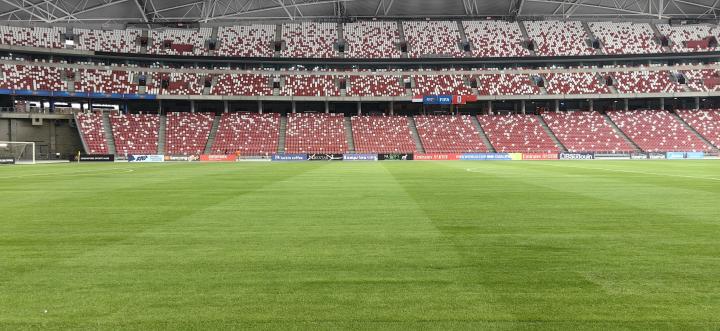目前看,体育场的草皮情况很平整,不是东南亚常见的大叶草,有很明显的新铺设痕迹。