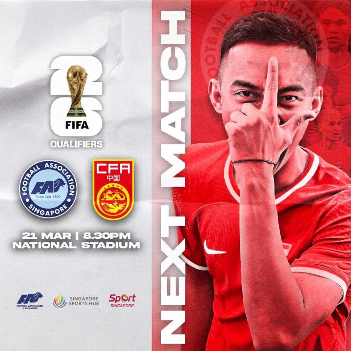 3月21日,世预赛第二阶段小组赛第3轮,国足将客场对阵新加坡。