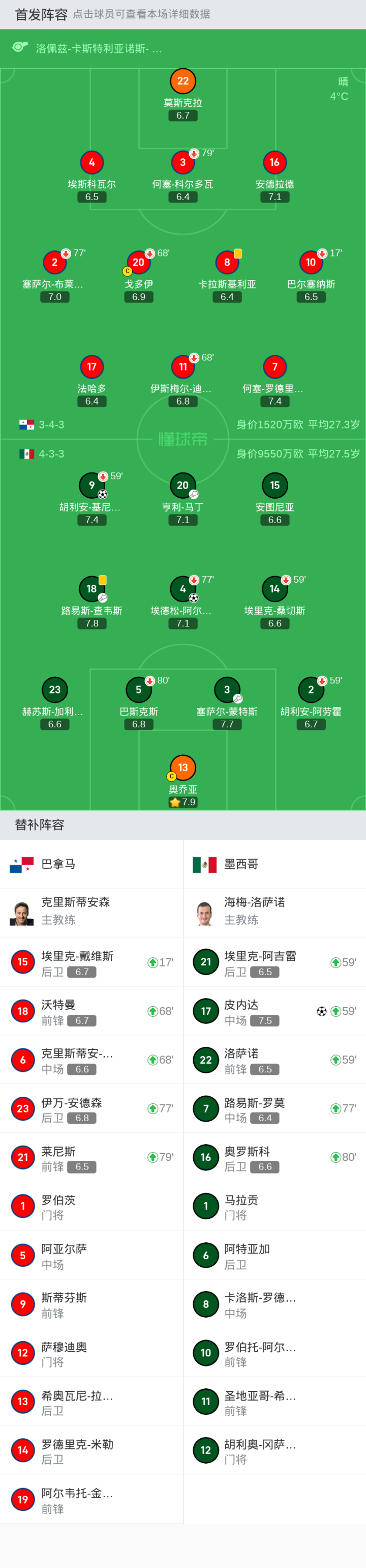 替换下场:68'20-戈多伊, 17'10-巴尔塞纳斯, 68'11-伊斯梅尔-迪亚斯, 77'2-塞萨尔-布莱克曼, 79'3-何塞-科尔多瓦