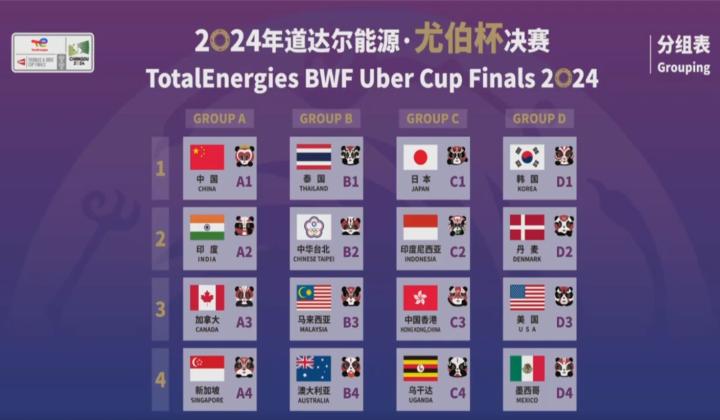 2024年汤尤杯将于4月27日-5月5日在四川成都进行,今天分组抽签仪式结束,小组分组形势出炉。