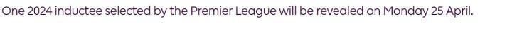 2024英超名人堂将从下周启动,并在3月25日(下周一)公布今年首位入选者。(注:英超官方公告误将3月25日写成4月25日)