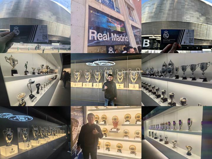 再来到皇马的主场——伯纳乌球场参观,荣誉室冠军奖杯琳琅满目,感受了同样作为百年俱乐部的风采!
