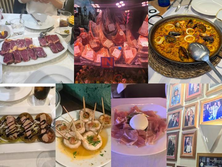 看看我们这两天在马德里品尝到的各种特色餐——马德里特色海鲜饭、火腿TAPAS特色餐、西班牙国家队球员+皇马球员御用餐厅的牛排大餐~