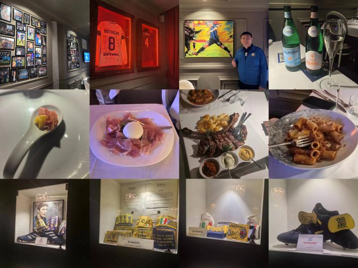 晚间,结束了在国米总部的独特体验之后,我们前往国米队魂萨内蒂的阿根廷烤肉餐厅,在蓝黑气息浓郁的餐厅来一顿丰富的大餐,也将各种珍贵的球鞋、球衣、签名藏品尽收眼底!