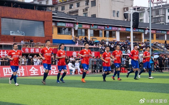 香港警务处官方介绍说:“贵州‘村超’足球联赛近年在内地网络火热起来,香港明星足球队早前亦有到访进行友谊赛,成为一时热话。在3月21至25日,香港警察足球会男女子队亦应邀到贵州‘村超’进行友谊赛,到内地说好香港警察故事。”