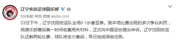于洪臣帮助中超队保级的2016赛季,辽足曾在东北德比提出申诉