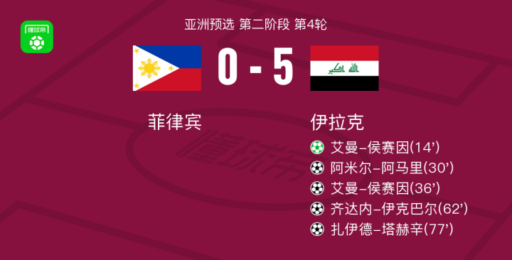 伊拉克5-0血洗菲律宾,艾曼-侯赛因梅开二度,扎伊德-塔赫辛建功