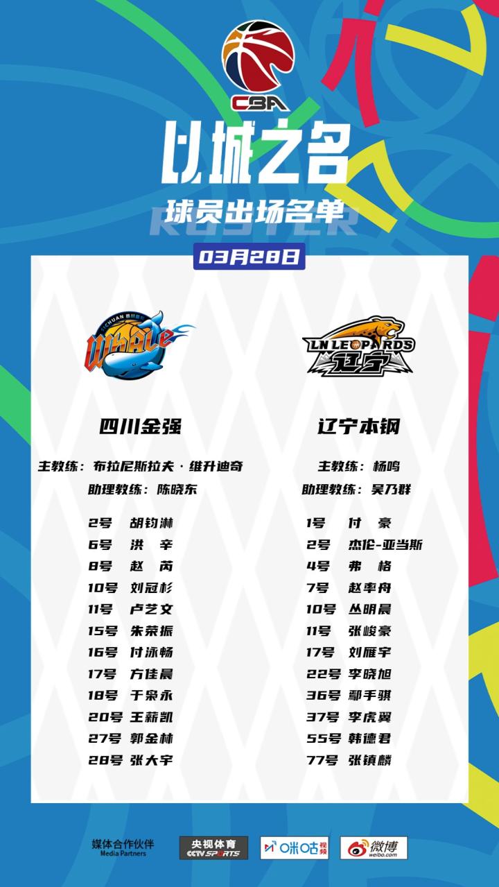 北京时间3月28日,今晚,辽宁客场挑战四川。赛前官方公布了本场两队的名单,上一场崴脚的赵继伟和莫兰德缺席本场比赛。