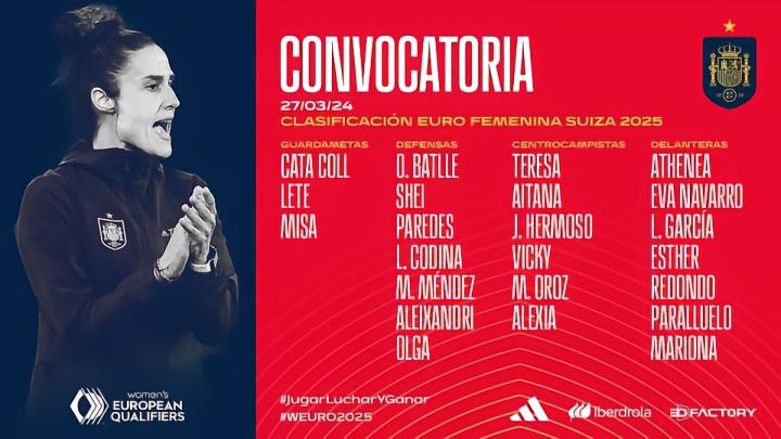 北京时间3月27日,西班牙女足发布新一期国家队征召名单,在23名球员中有8名来自巴萨女足,5名来自皇马女足。