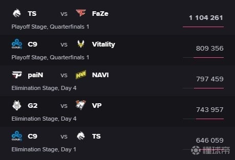 根据EsportsCharts网站的统计,FAZE对阵Spirit的比赛最高观看人数突破110w创造本届赛事截止目前的最高收视纪录,同时也是2024年CS2赛事的收视巅峰,但仅能排在反恐精英锦标赛历史收视率榜单第10,不及2021年PGL斯德哥尔摩Major峰值的一半。