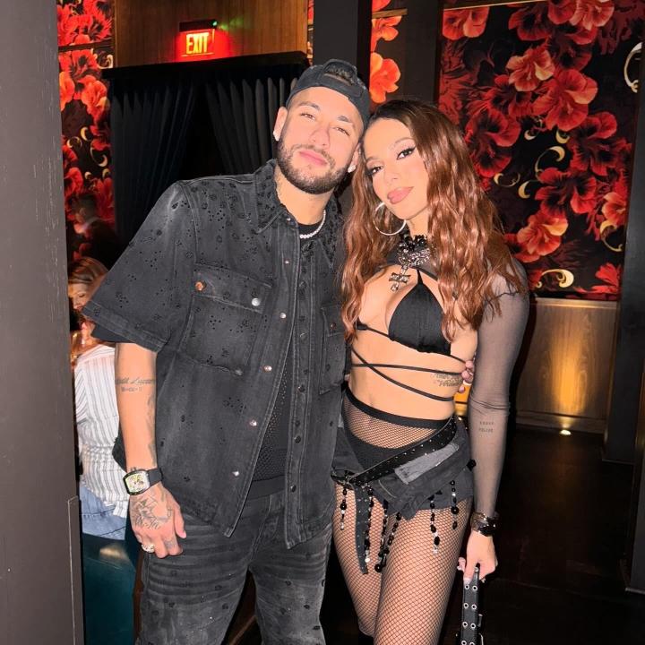 内马尔为美职棒比赛开球,与贝氏夫妇合照,和女歌手贴面亲昵