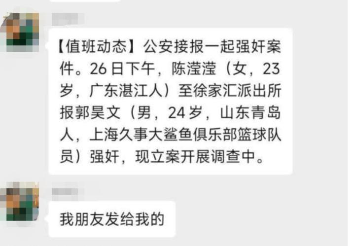 网传上海男篮郭昊文涉强奸案,媒体人:他将无限期离队