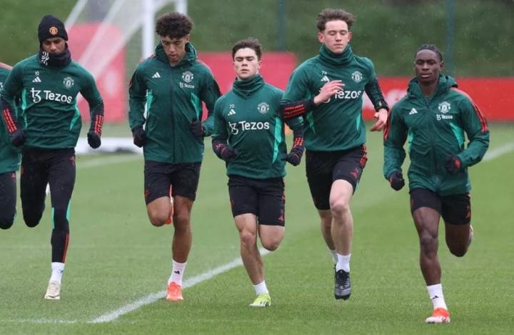 曼联青训成员芬利-麦卡利斯特、扎克-鲍曼、路易斯-杰克逊和哈里-阿玛斯等年轻人在周四被征召参加了一线队训练,以弥补老队员缺席的空缺。