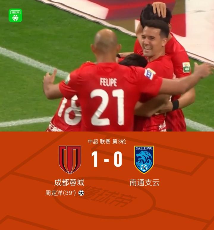 北京时间3月30日19:00,中超第3轮继续进行,成都蓉城坐镇主场凤凰山体育公园专业足球场迎战南通支云,本场主裁判为贺凯,VAR裁判为王迪。上半场,韦世豪长传策动,古尔芬克尔助攻周定洋破门。下半场,曹康世界波被吹。最终,成都主场1-0小胜南通。