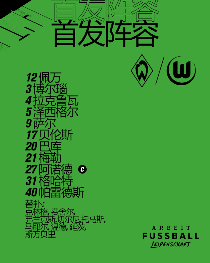 首发阵容来啦!萨尔重返首发!贝伦斯出任单箭头!马...