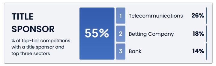 商业化层面,全球仅有55%的联赛拥有冠名赞助商。例如中超本赛季获得赞助后,全称应该是华润怡宝中超联赛。