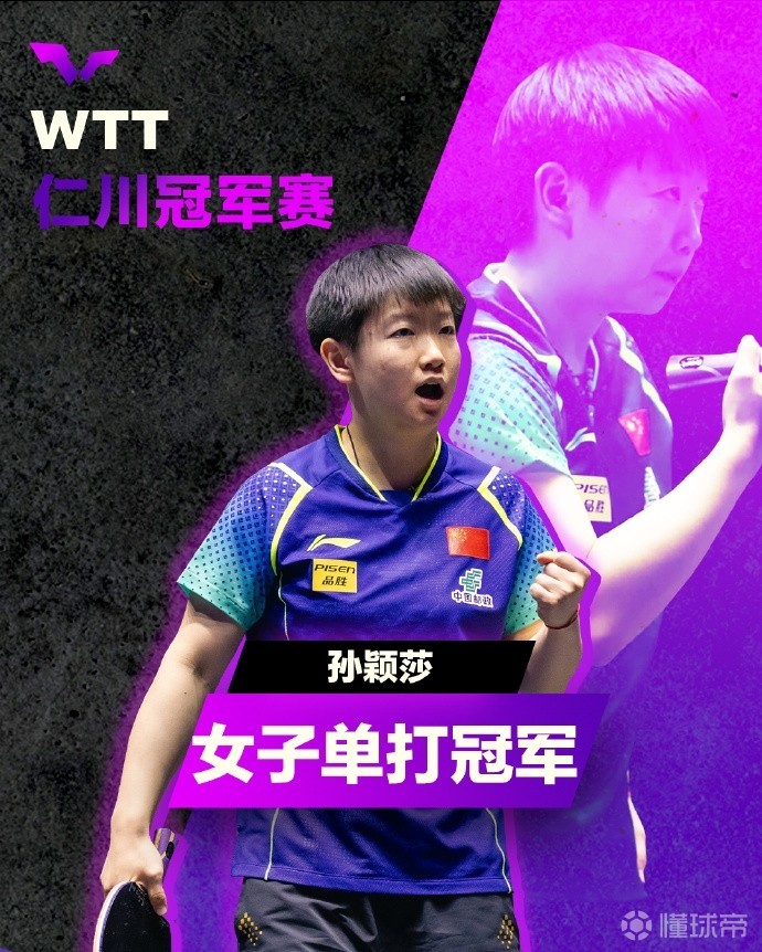 北京时间3月31日,WTT仁川冠军赛决出女单冠军。中国选手孙颖莎以4-0的大比分横扫队友王曼昱夺冠。