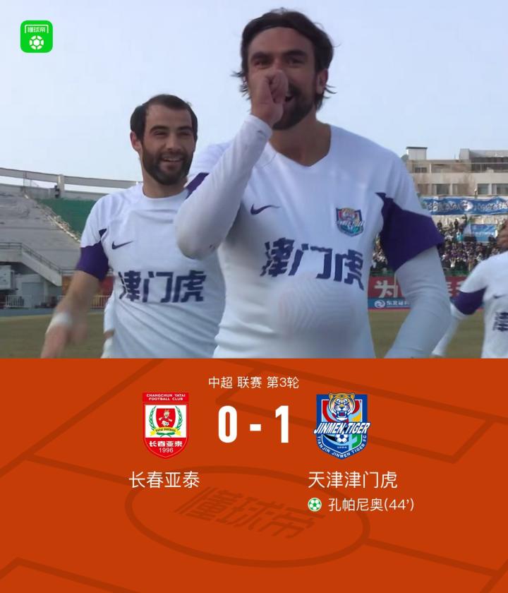 津门虎1-0客胜亚泰,孔帕尼奥点射制胜,塞鸟竖中指逃过判罚