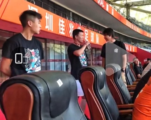 “上图是2020赛季前,深圳佳兆业和武汉卓尔在大运中心打热身赛,时任国足主帅的李铁亲临现场考察球员,我在主席台看到李铁到了,就坐在我的左手边,中间隔着皮特,皮特在李铁面前吐槽多纳多尼,被我听到了,而我的右手边坐着孙可和戴伟浚,他俩有伤只能作壁上观。记得当时孙可出于礼貌和李铁握手打招呼,而初来乍到默默无闻的的戴伟浚没有凑上前。”