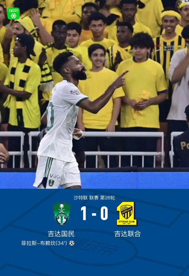 吉达国民1-0吉达联合,菲拉斯-布赖坎打进全场唯一进球
