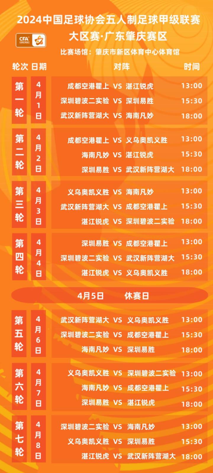 4月1日,随着2024中国足球协会五人制足球甲级联赛大区赛·广东肇庆赛区第一轮比赛的打响,本赛季五甲联赛拉开了大幕。在首个比赛日中,湛江锐虎、深圳易胜体育、海南凡妙分别战胜各自对手,拿到三分。