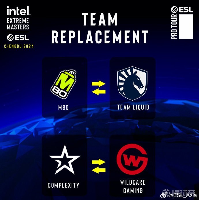 注:随着COL以及M80确认缺席本次IEM,Team Liquid以及Wildcard Gaming将代替他们。