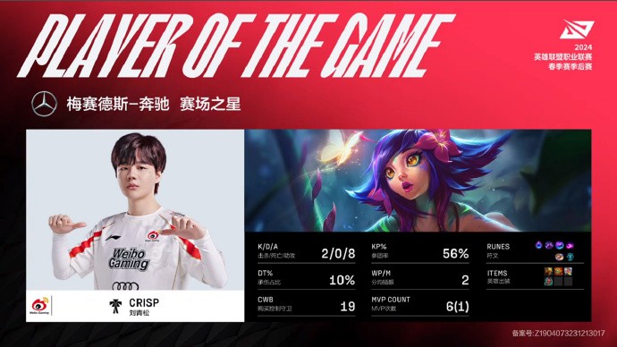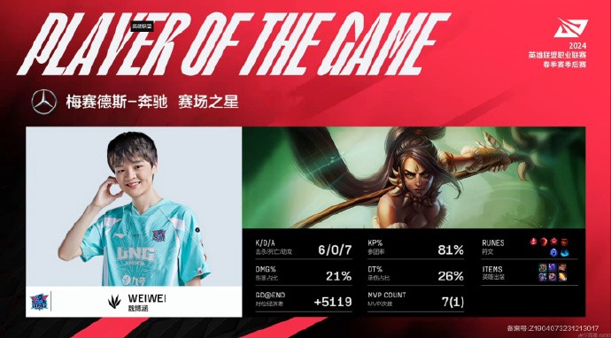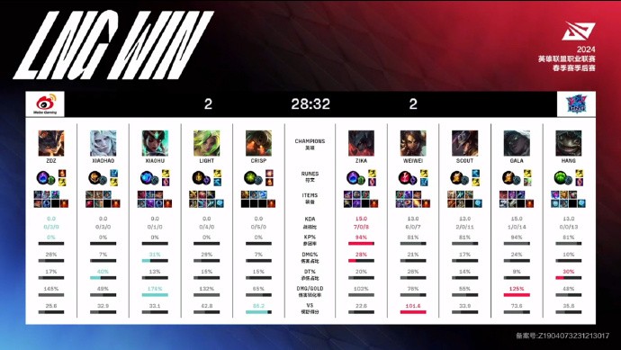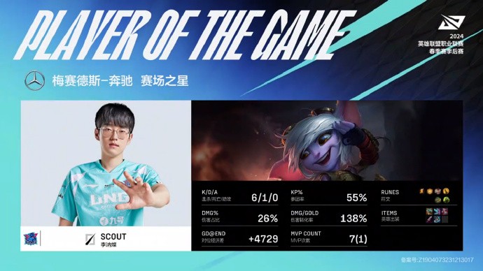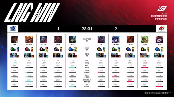 第10分钟,双方河道爆发团战,Weiwei收获一血加三杀,LNG打出0换3拿下先锋。
