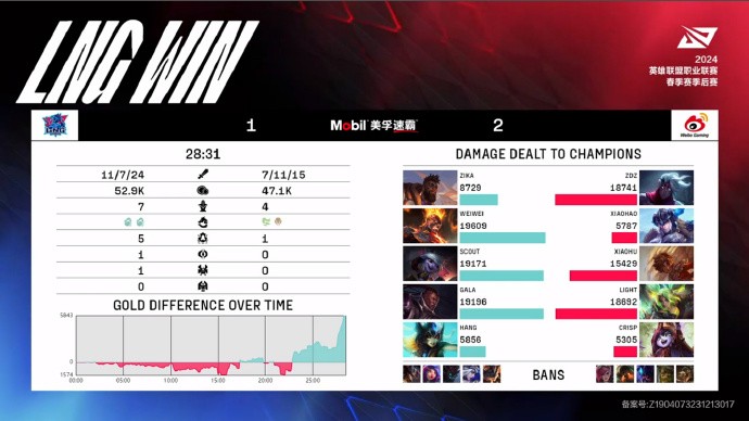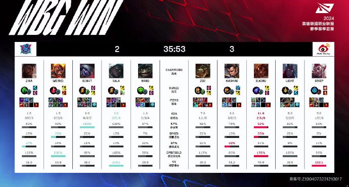 电竞赛事战报2024英雄联盟LPL春季赛季后赛LNG vs WBG,LNG 2-3 WBG,WBG再次拒绝让二追三将对战JDG。